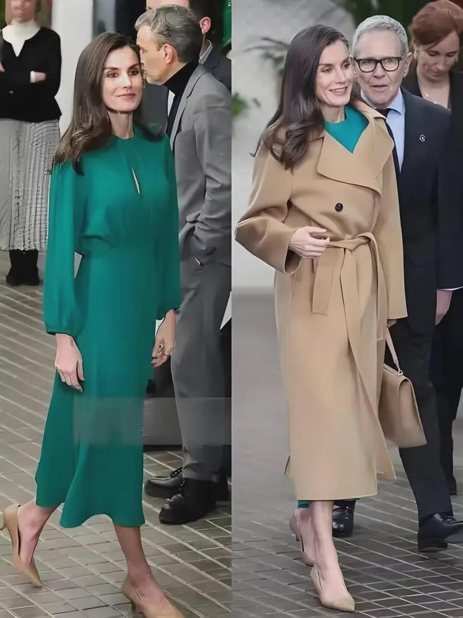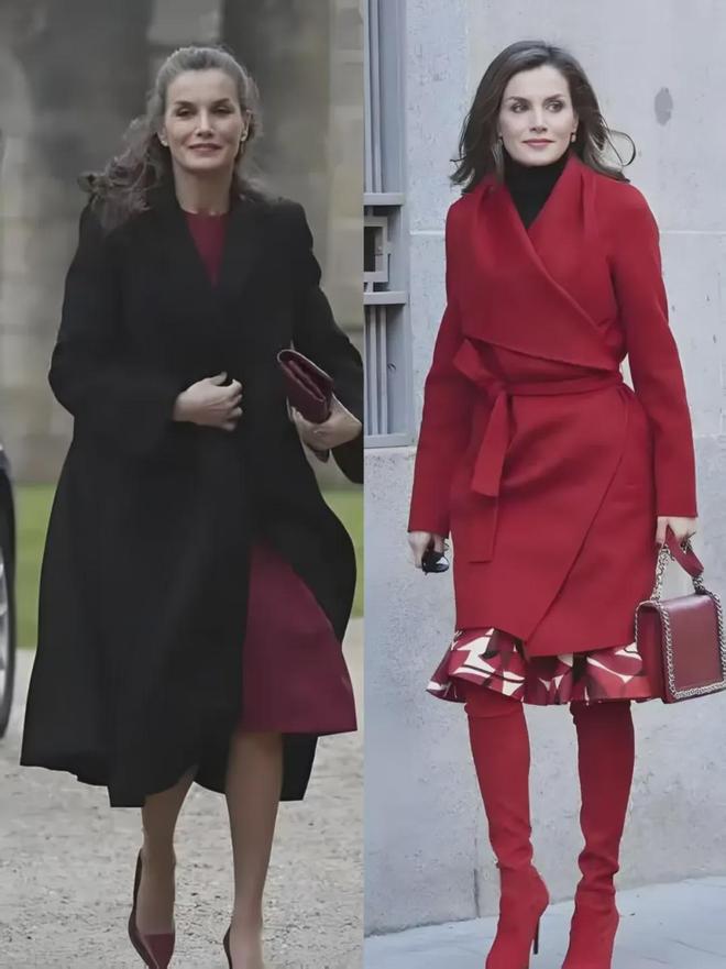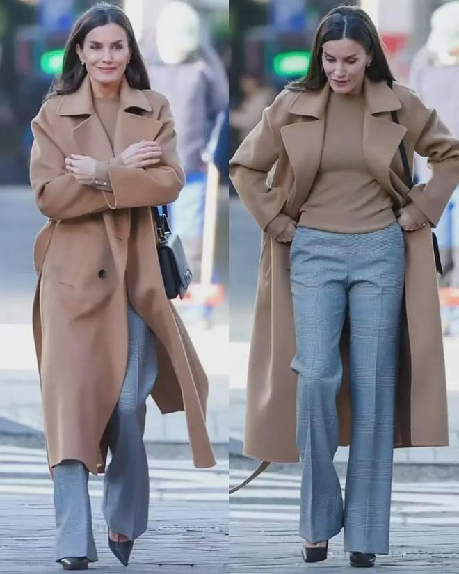 我们可以学学西班牙王后,她穿大衣不管是搭配裙子,还是搭配阔腿裤,都非常注重腰线的打造。