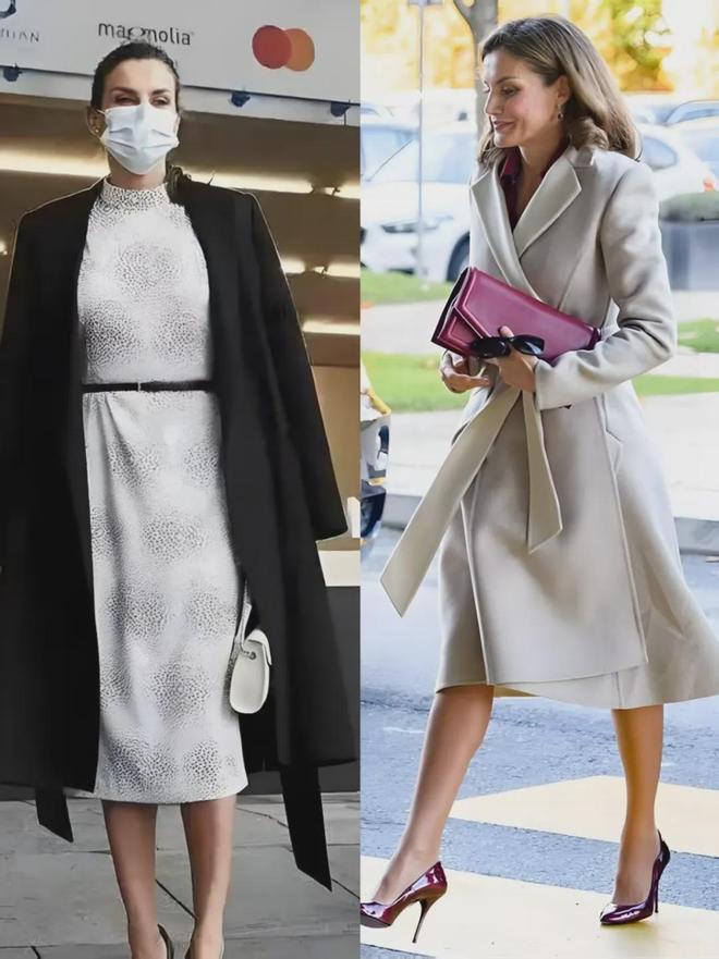 大衣搭配裙子是最优雅端庄的大衣穿法了,西班牙王后在秋冬季节出席正式场合,很多时候都是这样穿的。